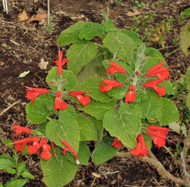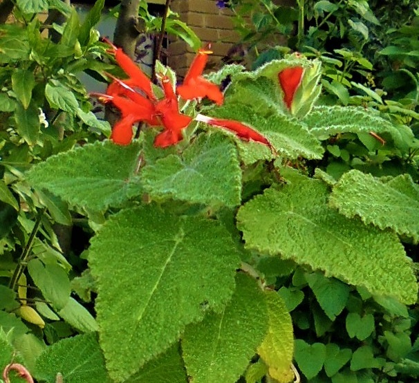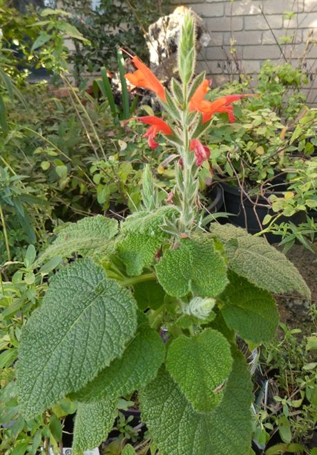 Salvia squalens: is a mid sized open shrub 1-1.2mH with long tubular vermillion flowers in Spring through to Winter