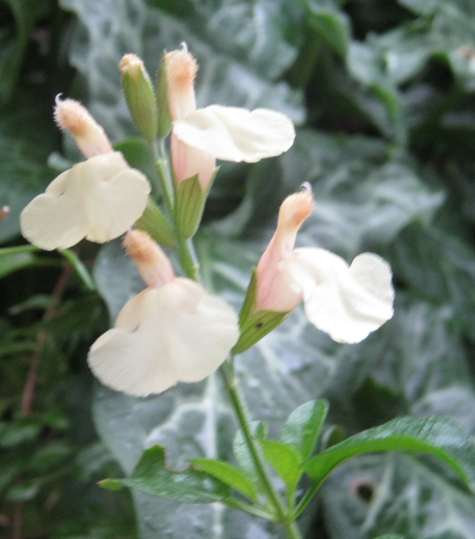 Flowers: are a typical greggii / microphylla type flower shape. although a lovely yellow, the tube has pink tones. The hood is pale yellow with slightly pinkish hairs, especially when in bud. The bottom lobes are pale yellow with a white patch around the throat area to guide the bees and insects into the flower.