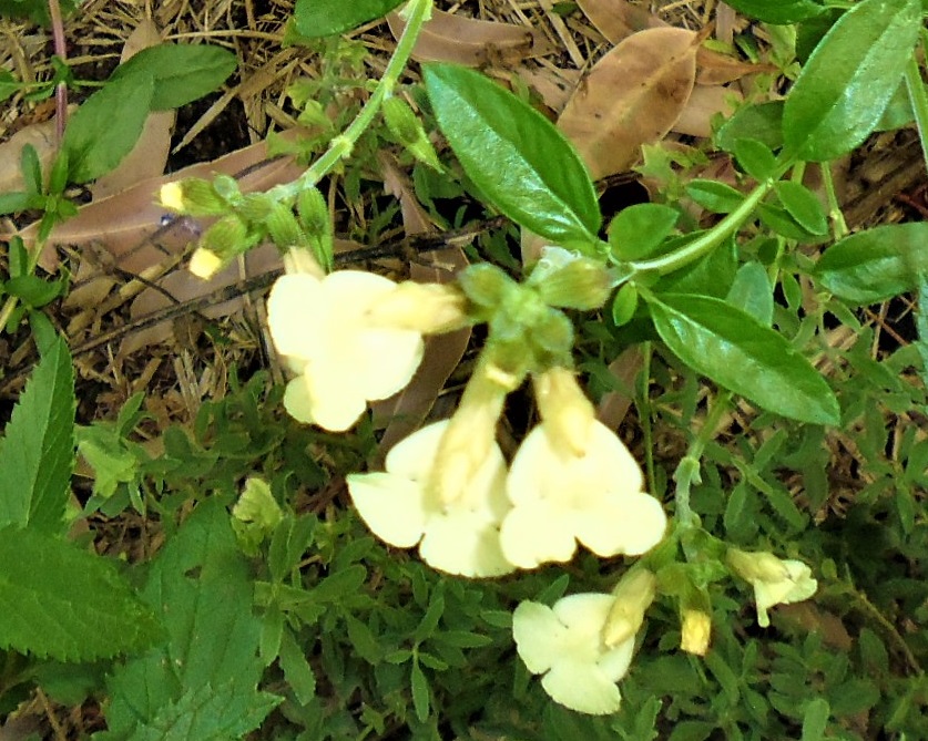 Salvia x jamensis ‘Yellow’: is a small upright subshrub 40-60 cm H with lovely yellow flowers most of the year for a full sun position.